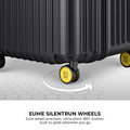 - The EUME Trunk Check-in Plus 26-inch trolley bag large size is meticulously crafted from 100% German Bayer Polycarbonate (PC), known for its durability and lightweight construction. Equipped with smooth EUME SilentRun 360-degree double wheels for stable steering, facilitated by ball-bearing mounted wheels with cushioned axles and TSA-approved locks, it offers secure and effortless travel, ideal for airline baggage inspections.