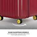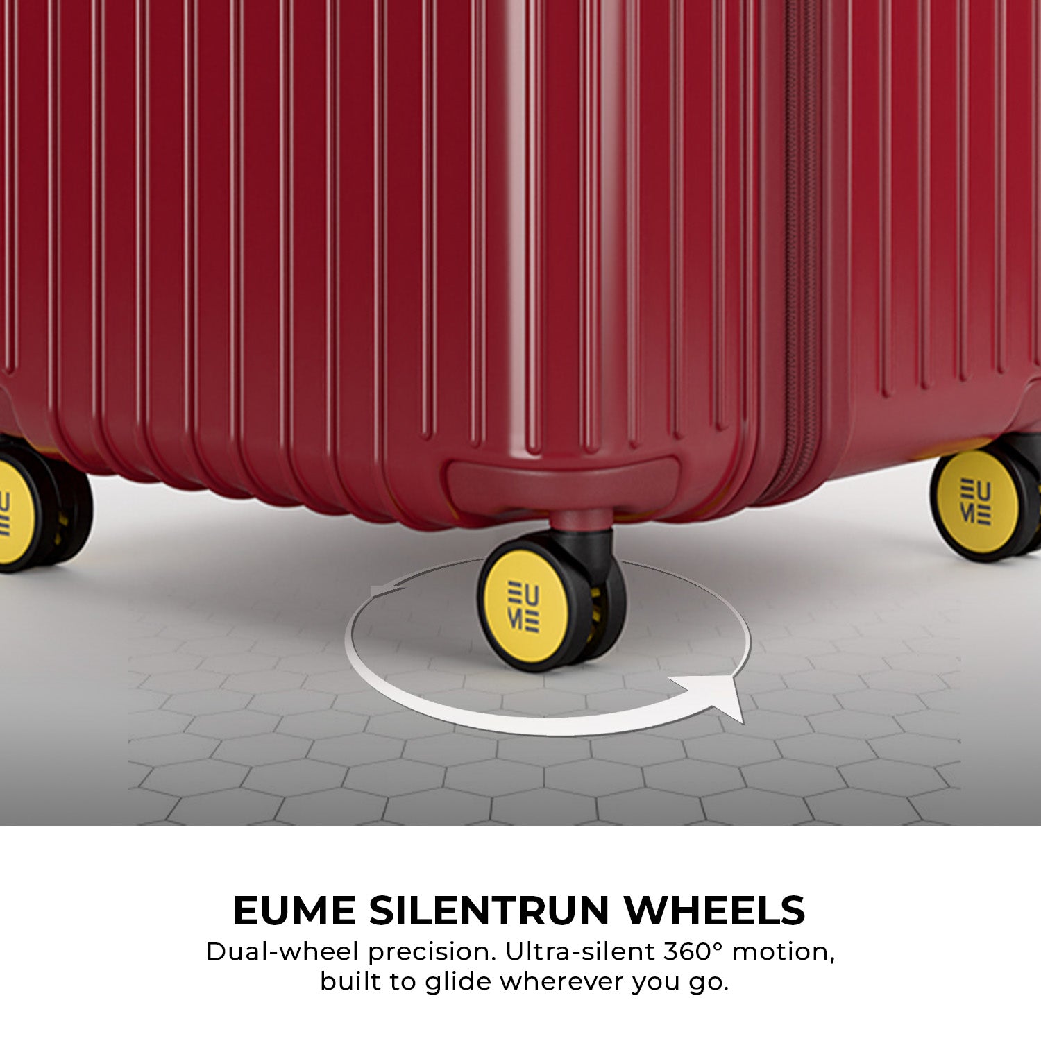 - The EUME Trunk Check-in Plus 26-inch trolley bag large size is meticulously crafted from 100% German Bayer Polycarbonate (PC), known for its durability and lightweight construction. Equipped with smooth EUME SilentRun 360-degree double wheels for stable steering, facilitated by ball-bearing mounted wheels with cushioned axles and TSA-approved locks, it offers secure and effortless travel, ideal for airline baggage inspections.