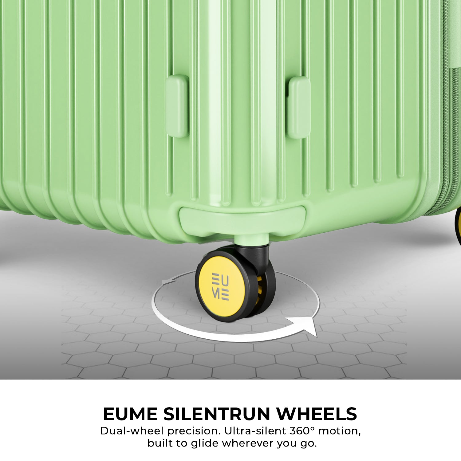 - The EUME Trunk Check-in Plus 26-inch trolley bag large size is meticulously crafted from 100% German Bayer Polycarbonate (PC), known for its durability and lightweight construction. Equipped with smooth EUME SilentRun 360-degree double wheels for stable steering, facilitated by ball-bearing mounted wheels with cushioned axles and TSA-approved locks, it offers secure and effortless travel, ideal for airline baggage inspections.