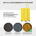 - These polycarbonate trolley bags feature three sturdy handheld handles capable of lifting up to 22kgs, and a premium-quality zippers for reliable closure, ensuring convenience and durability. Further, our luggage trolley can be extended by up to 3 inches, providing more room for extra items when needed.