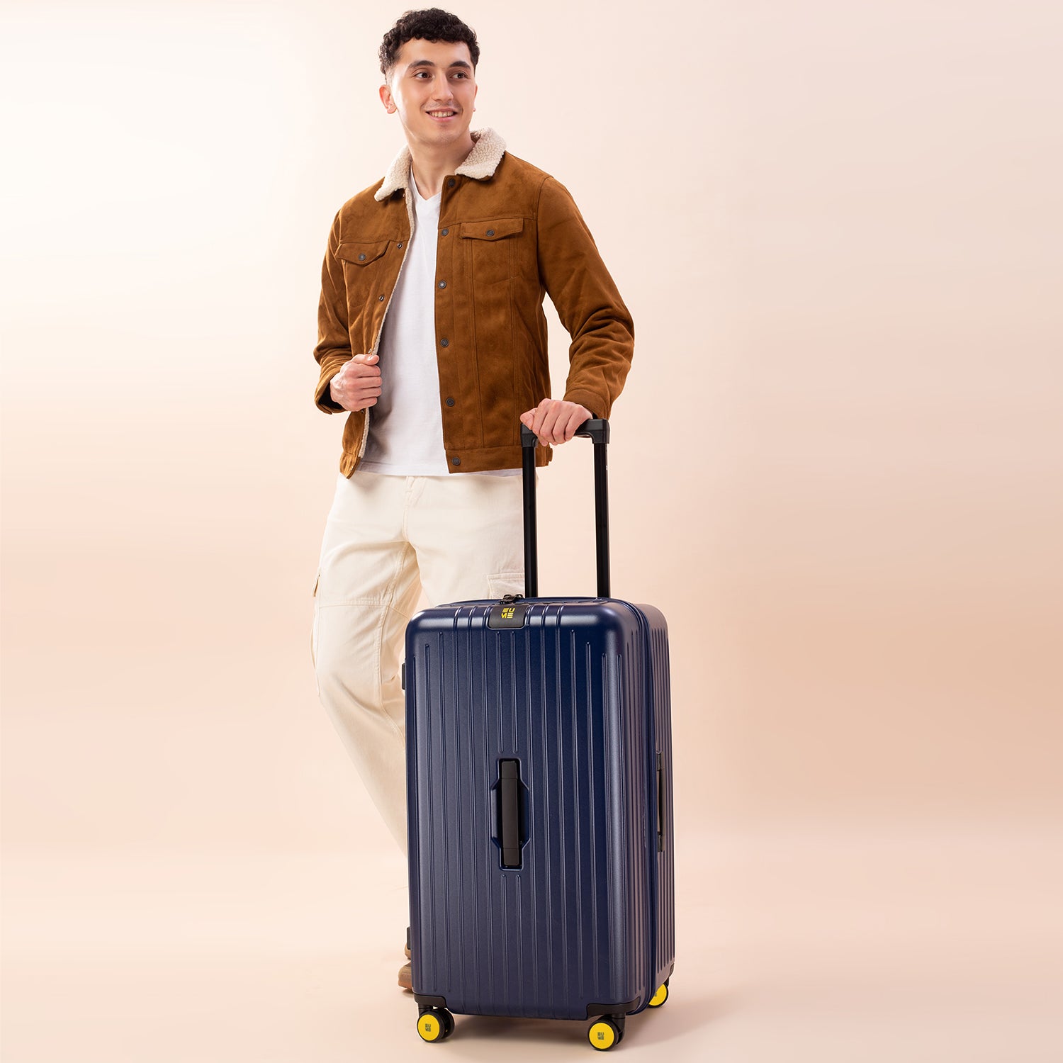 - These polycarbonate trolley bags feature three sturdy handheld handles capable of lifting up to 22kgs, and a premium-quality zippers for reliable closure, ensuring convenience and durability. Further, our luggage trolley can be extended by up to 3 inches, providing more room for extra items when needed.