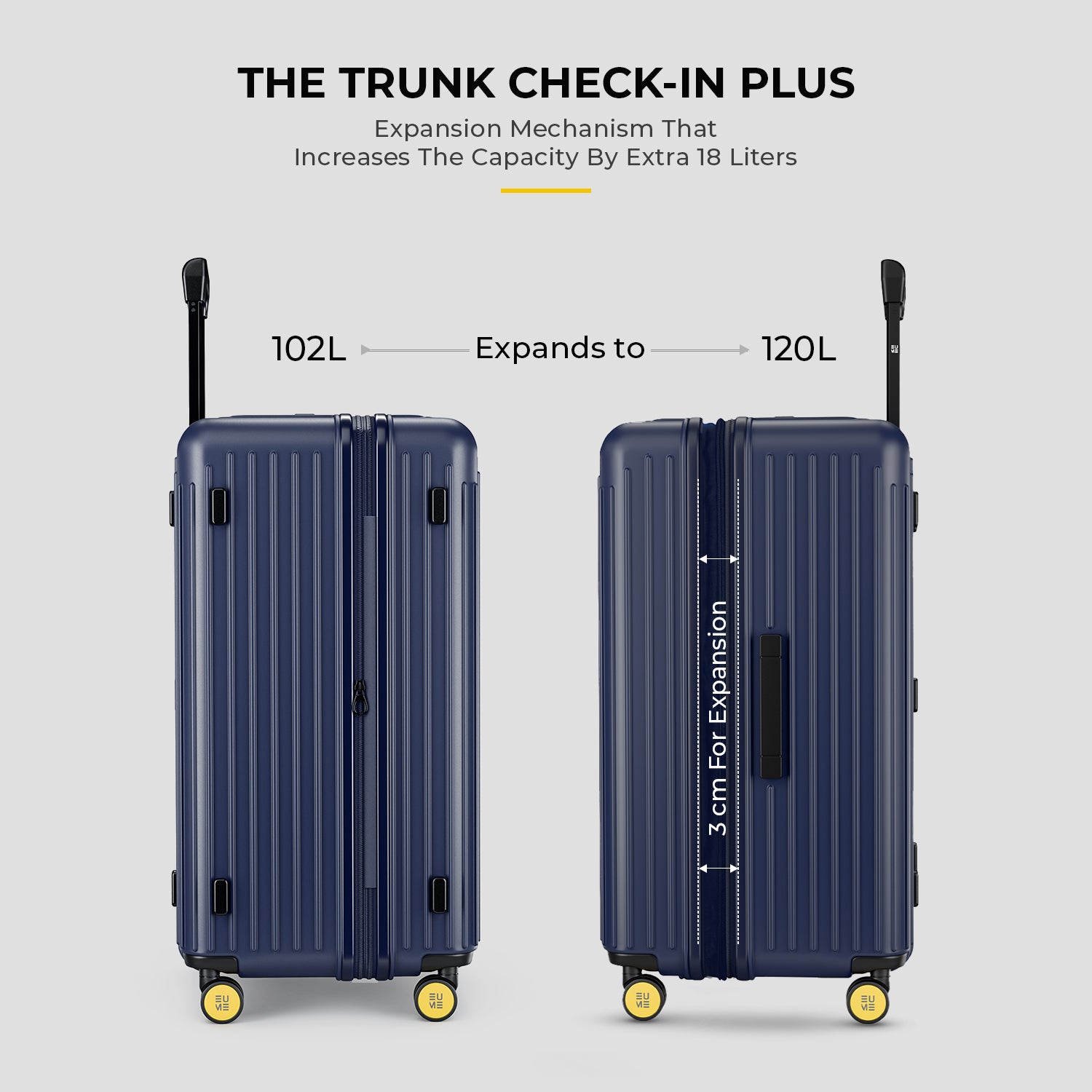 - The Eume Trunk Check-in Plus Luggage is backed by a 5-Year Warranty by EUME against all manufacturing defects. This warranty is broken into a complimentary 2-year warranty by EUME. To enjoy an extended 3 years of warranty for free, please register your product within 1 month of purchase.