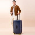 - The EUME Trunk Check-in Plus 26-inch trolley bag large size is meticulously crafted from 100% German Bayer Polycarbonate (PC), known for its durability and lightweight construction. Equipped with smooth EUME SilentRun 360-degree double wheels for stable steering, facilitated by ball-bearing mounted wheels with cushioned axles and TSA-approved locks, it offers secure and effortless travel, ideal for airline baggage inspections.