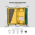 - Two pockets in the compression pad section are perfect for holding necessities like moisturizers, face wash, skincare products, combs, toiletries, lingerie, and socks. In order to hold clothing firmly in place, compression belts are also incorporated. In addition, our travel bag trolley has a telescopic trolley handle designed for smooth, stage-free adjustment, guaranteeing optimal comfort and easy mobility for a hassle-free travel experience.