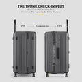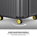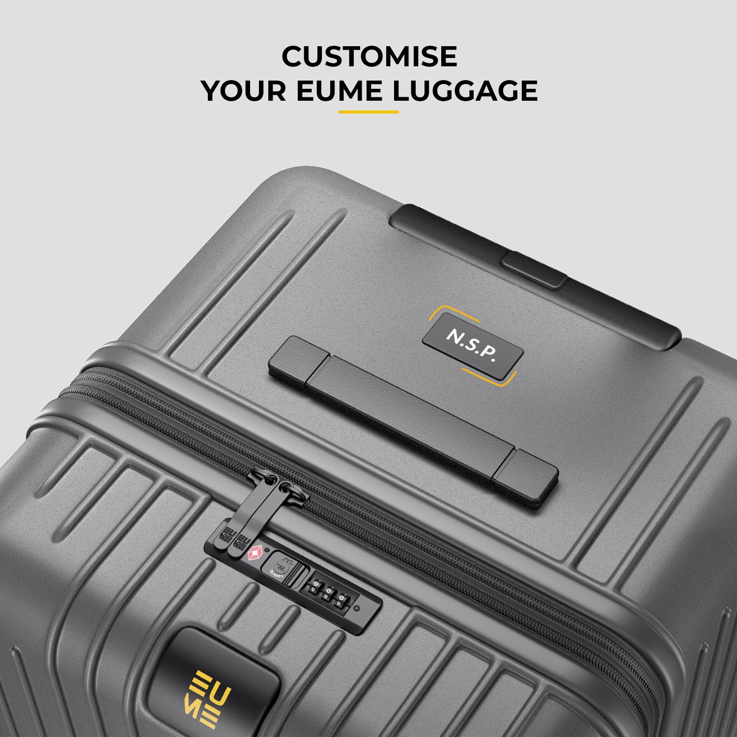 - The EUME Trunk Check-in Plus 26-inch trolley bag large size is meticulously crafted from 100% German Bayer Polycarbonate (PC), known for its durability and lightweight construction. Equipped with smooth EUME SilentRun 360-degree double wheels for stable steering, facilitated by ball-bearing mounted wheels with cushioned axles and TSA-approved locks, it offers secure and effortless travel, ideal for airline baggage inspections.
