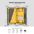 - These polycarbonate trolley bags feature three sturdy handheld handles capable of lifting up to 22kgs, and a premium-quality zippers for reliable closure, ensuring convenience and durability. Further, our luggage trolley can be extended by up to 3 inches, providing more room for extra items when needed.