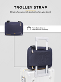 - Nestled between the main and secondary compartments is a hidden magnetic pocket for discreet, secure storage. On the back, a multifunctional compartment doubles as both a zippered pocket and a trolley strap, enhancing travel convenience.